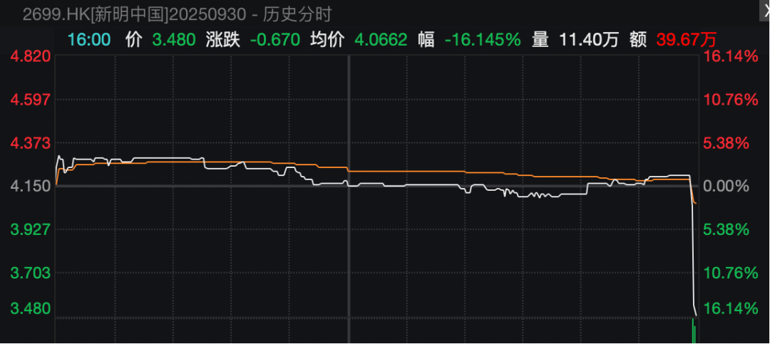 值得注意的是,这已经是新明中国连续第三个交易日大跌了。9月30日,新明中国尾盘直线跳水,从微涨至收跌超16%。