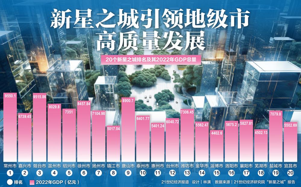 在实现中国式现代化过程中,除了光芒闪耀的明星城市外,还需要一批发展基础扎实、发展质量过关、发展潜力突出的普通地级市,这些城市如同冉冉升起的新星,承载着中国城镇化发展的新希望,21世纪经济研究院将其定义为“新星之城”。